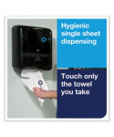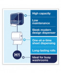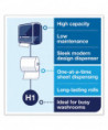 The Tork® Elevation® Matic Paper Towel Dispenser improves hygiene, reduces waste and helps save money with hands-free, controlled-consumption dispensing. Just one less thing to worry about. Reliable and durable, the Tork Matic dispenser eliminates cross-contamination and improves hygiene. One-towel-at-a-time dispensing reduces usage and waste, while saving money by controlling consumption. This high-capacity dispenser is ideal for busy washrooms. Mechanical hands-free dispensing produces a towel smoothly every time. No batteries needed; powered by your patrons. Contemporary design ensures easy and intuitive maintenance and easy to read level indicator makes refilling paper rolls quick and easy.