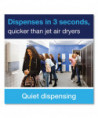 Designed for high-traffic washrooms where staff needs to maximize cleaning time and maintain a good flow of guests. Compatible with signature hand towels, the system offers very high capacity which can be dispensed quickly and without interruption to keep the flow.