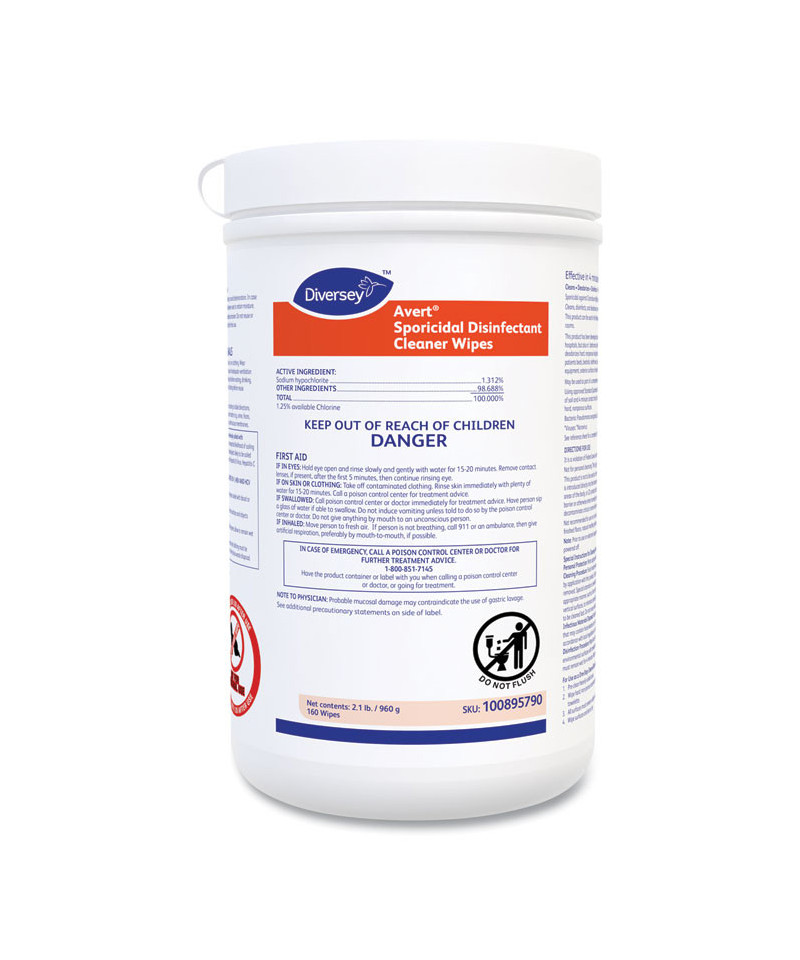 Effective in four minutes against Clostridium difficile (C. diff) spores. May be used to clean and disinfect sinks, faucets, fixtures, bathrooms, restrooms, tubs, and showers. Avert™ Sporicidal Disinfectant Cleaner Wipes cleans, disinfects and deodorizes hard, nonporous surfaces in one labor saving step with no rinsing required. Designed for use on hard, nonporous surfaces such as those found in hospitals and other healthcare facilities. Effective in four minutes against Clostridium difficile (C. diff) spores. May be used to clean and disinfect sinks, faucets, fixtures, bathrooms, restrooms, tubs, and showers.