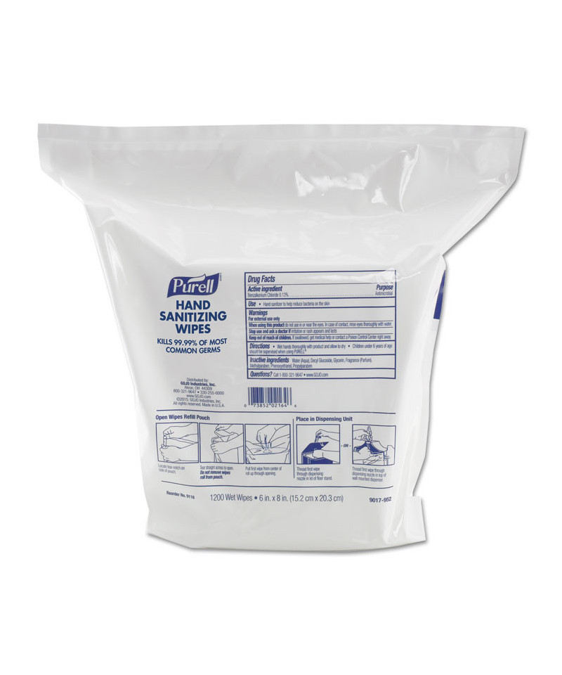 All of the germ-killing benefits of PURELL brand hand sanitizer in a non-linting, durable hand wipe. Providing PURELL hand wipes in your office or facility shows you care about your team's well-being. Textured for effective cleaning. Kills 99.99% of most common germs that may cause illness.