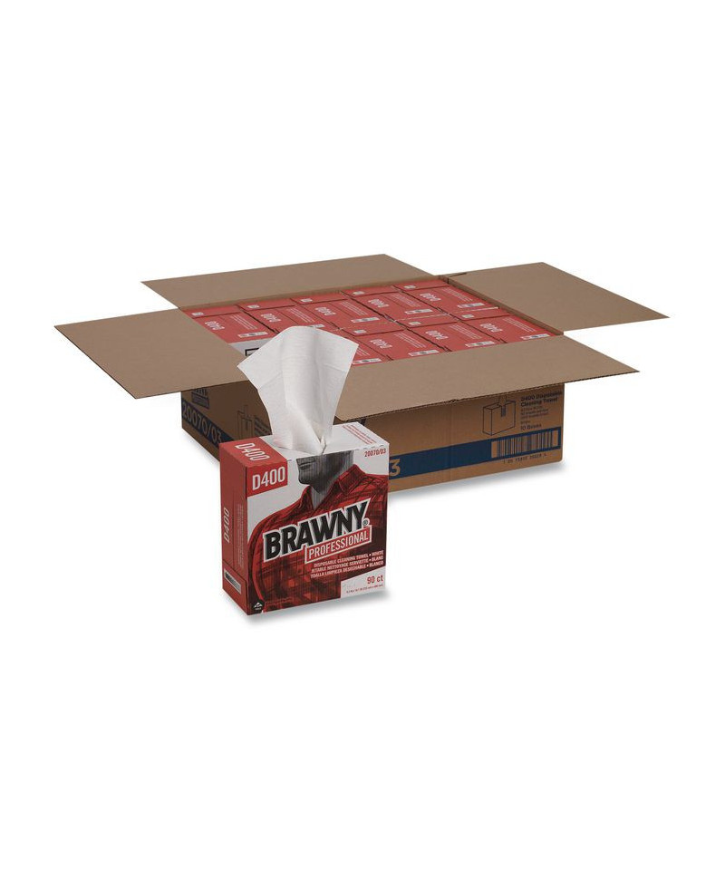 Brawny® Professional DRC wipers are engineered to offer excellent bulk and absorption. Strong and versatile enough for cleaning both water and oil-based spills, yet soft enough for personal use. These inter-folded wipers come in a tall box format that provides for one-at-a-time dispensing to help reduce waste and control costs. Strong, versatile wipers with excellent bulk, softness and absorption. Cleans both water- and oil-based spills; performs like a rag without the expense. Tall box for easy dispensing. Dispenser box provides easy, one-handed, one-at-a-time dispensing.