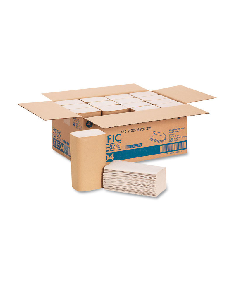 Pacific Blue Basic S-Fold Paper Towels, 1-Ply, 10.25 x 9.25, Brown, 250/Pack, 16 Packs/Carton