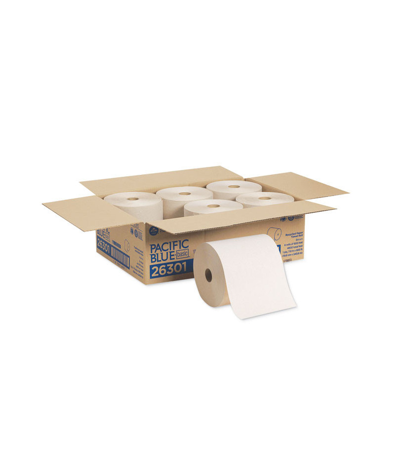 Pacific Blue Basic Recycled Nonperforated Paper Towel Rolls, 1-Ply, 7.78 x 800 ft, Brown, 6 Rolls/Carton
