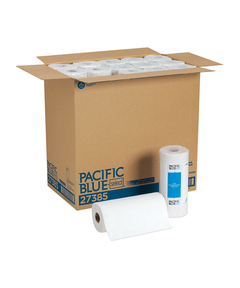 Pacific Blue Select Two-Ply Perforated Paper Kitchen Roll Towels, 2-Ply, 11 x 8.8, White, 85/Roll, 30 Rolls/Carton