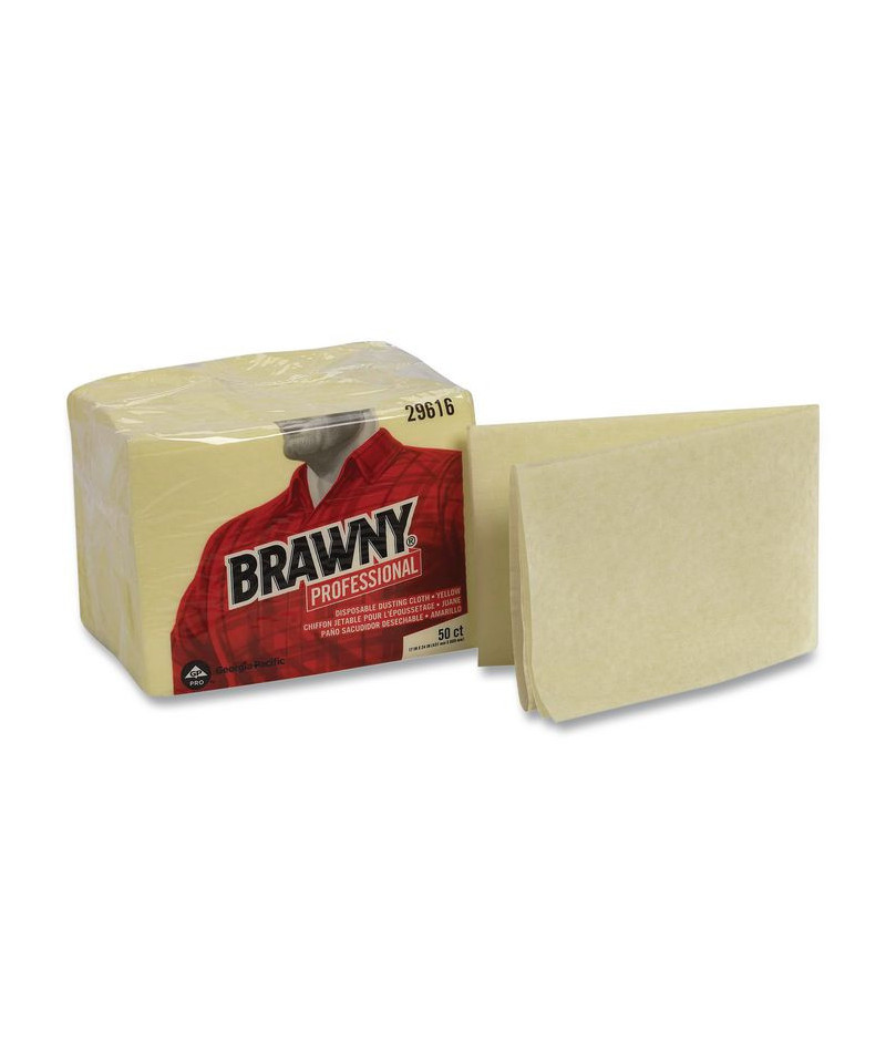 Brawny® Professional 1/8-fold dusting cloths are specially treated to attract and hold dust for quick and easy dusting duties. Strong enough to resist tears for extend use, yet soft enough to use on finished wood surfaces. These wipers come in a space-saving moisture-resistant poly packaging that provides for quick and convenient dispensing. Dusting Cloths are primarily comprised of cellulous based rayon fibers. These wipers are soft and reusable, yet disposable when contaminated or excessively soiled.