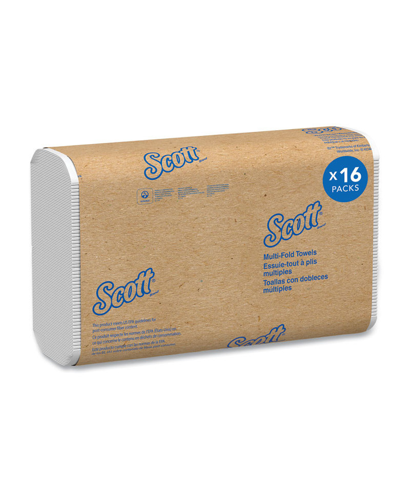 Scott® Multifold Paper Towels are packed in a Space-Saving Case which creates a more compact shipping and storage solution. When your office restroom or kitchen needs commercial paper towels, Scott® Multifold Paper Towels are an economical choice. They fit into any universal dispenser for tri-fold paper towels or multifold towels (which helps control over use). This product meets or exceeds EPA guidelines for minimum post-consumer waste content. This product is a part of Kimberly-Clark Professional's Responsible Partners program designed to reach our sustainability goals.