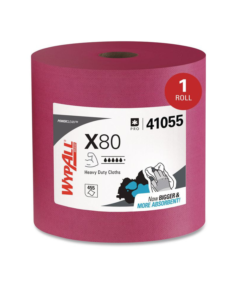 WypAll® is the number one brand of disposable wipes in the US and Canada. Maximize performance while minimizing time, effort and product waste. If you've been using industrial cloth towels, it's time to make the switch to WypAll® PowerClean™ X80 Cloths. These cloths feature innovations like high-tech Hydroknit® fast-absorbing material and are durable for scrubbing. WypAll® X80 cloths now absorb over 20% more oil and up to 15% more water than before. In addition, they now feature a tough, precision-engineered surface texture, making them even more effective for your cleaning tasks. The heavy-duty cloths are made of soft pulp fibers, bonded to a polypropylene base sheet for absorbency and durability, making them suitable for removing dirt, oil, grime and solvents in industrial and manufacturing businesses. The cloths are reusable and reinforced for strength when wet and dry. These bulk cloths are a great alternative – safer and more efficient – to replace laundered rental shop towels and cleaning towels. These premium industrial cleaning cloths can be used for heavy-duty machine and part wiping, wiping metal shavings, prepping surfaces with solvents, and cleaning rough surfaces. When you're running a business, it pays to use the very best supplies. For the toughest grease and grime, trust the performance and innovation of WypAll® PowerClean™ X80 Heavy Duty Cloths.