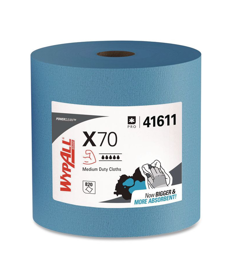 WypAll® is the number one brand of disposable wipes in the US and Canada. Maximize performance while minimizing time, effort, and product waste. If you've been using either laundered shop towels or textile shop rags, it's time to make the switch to WypAll® PowerClean™ X70 Cloths. WypAll® PowerClean™ X70 Medium Duty Cloths are durable, absorbent industrial cloths featuring high-tech Hydroknit® material.