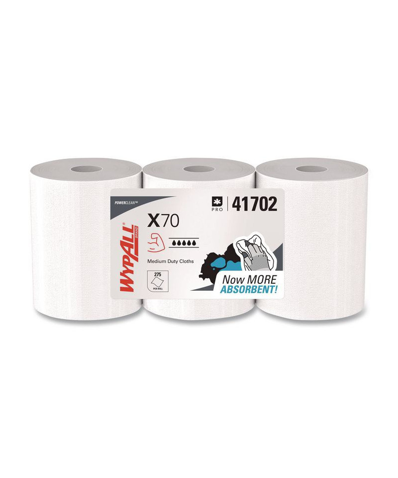 WypAll® is the number one brand of disposable wipes in the US and Canada. Maximize performance while minimizing time, effort, and product waste. If you've been using either laundered shop towels or textile shop rags, it's time to make the switch to WypAll® PowerClean™ X70 Cloths. WypAll® PowerClean™ X70 Medium Duty Cloths are durable, absorbent industrial cloths featuring high-tech Hydroknit® material.