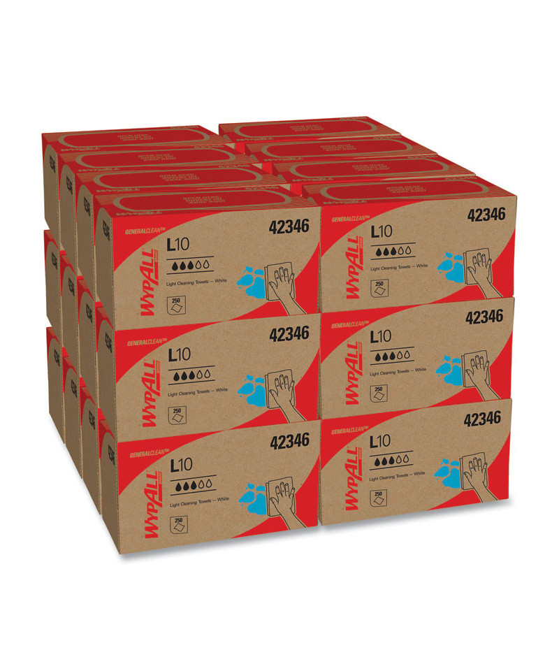 WypAll® is the number one brand of disposable wipes in the US and Canada. Create a clean work environment with light-duty general cleaning solutions. When you need a light-duty towel to deliver results at an economical price, WypAll® GeneralClean™ L10 light cleaning towels are a great choice. They are great replacement cleaning towels for spray-and-wipe jobs, glass surface cleaning, absorbing small liquid spills, detail and final assembly wiping. You'll find these disposable towels in hospitality housekeeping, retail cleaning and general light-duty cleaning pursuits. Since these towels offer better drying performance than paper towels, you get better drying performance that can reduce usage overall. WypAll® GeneralClean™ L10 light cleaning towels are a terrific, reliable replacement for paper towels and can add efficiency to your business. These towels meet EPA guidelines for recycled fiber content. They're a trusted tool to help you get the job done right.
