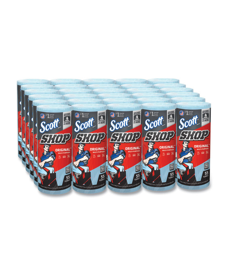 Shop Towels, Standard Roll, 1-Ply, 9.4 x 11, Blue, 55/Roll, 30 Rolls/Carton