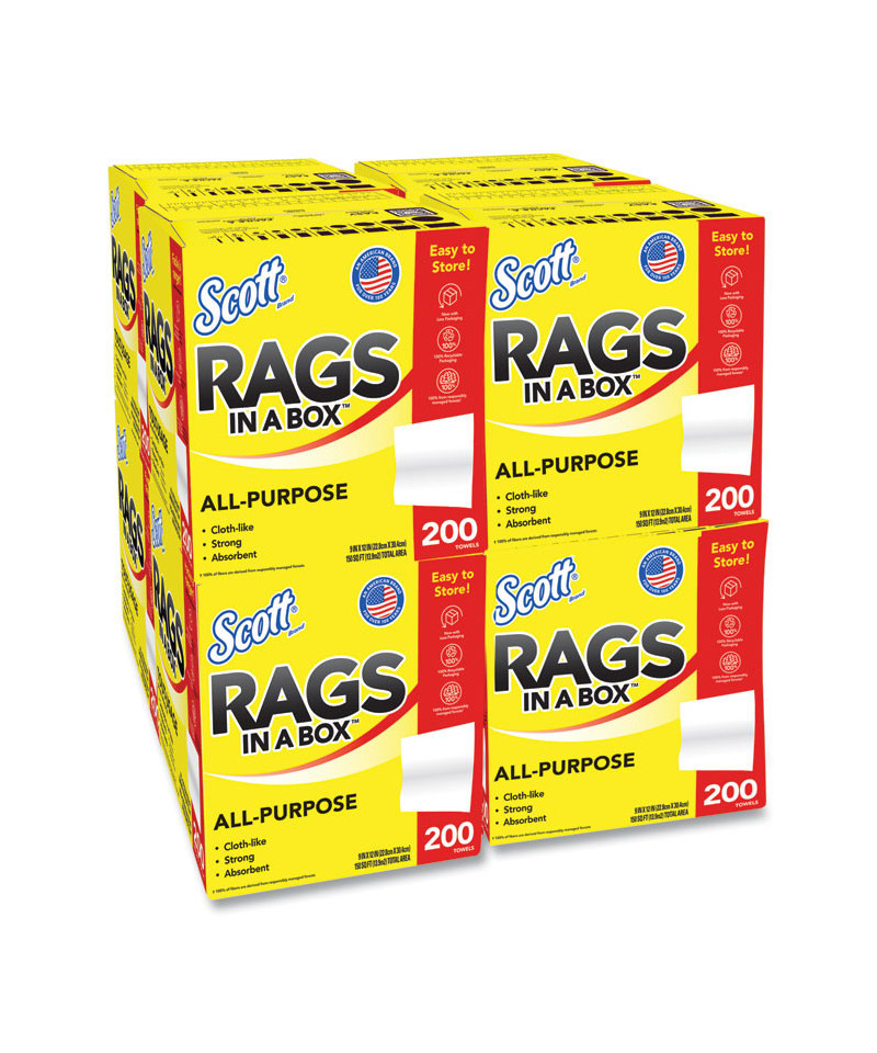 Whether you're cleaning around the home, at work or on the go, you can trust Scott® Rags In A Box™ to help you get the job done right. 2X more durable when wet (vs the leading value brand kitchen paper towel), Scott® Rags In A Box™ are strong and absorbent, making them ideal for absorbing spills, wiping up grease and grime and cleaning up after home improvement projects. Disposable for a clean towel every time, Scott® Rags In A Box™ feel and perform like a cloth and are soft enough to use on your face and hands (not for use on compromised skin or open wounds). The Pop-Up Box includes a built-in handle for easy portability, allows for easy dispensing and keeps the disposable rags clean until you need them. No matter what or where you're cleaning, use cloth-like Scott® Rags In A Box™ for a clean you can trust!