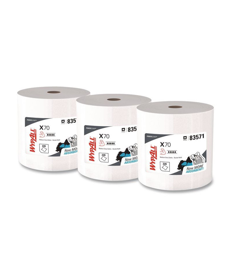 WypAll® is the number one brand of disposable wipes in the US and Canada. Maximize performance while minimizing time, effort, and product waste. If you've been using either laundered shop towels or textile shop rags, it's time to make the switch to WypAll® PowerClean™ X70 Cloths. These medium-duty cloths are durable, absorbent industrial cloths featuring high-tech Hydroknit® material. WypAll® X70 Cloths now absorb up to 20% more oil and water than before. In addition, they feature a new cloth-like look and feel for enhanced absorbency, making them even more effective for your cleaning tasks. These cloths are made of soft pulp fibers, bonded to a polypropylene base sheet for absorbency and tear resistance, making them suitable for removing dirt, oil, grime and solvents in a variety of industrial and manufacturing industries. These cloths are so sturdy that they can often be used more than once. (Once you've used them a few times, they're disposable.) These premium industrial cleaning cloths are designed to clean surfaces and tools, making them a must-have for the HVAC, automotive, manufacturing and industrial industries. When you're running a business, it pays to use the very best supplies. Trust the performance and innovation of WypAll® PowerClean™ X70 medium duty cloths today.