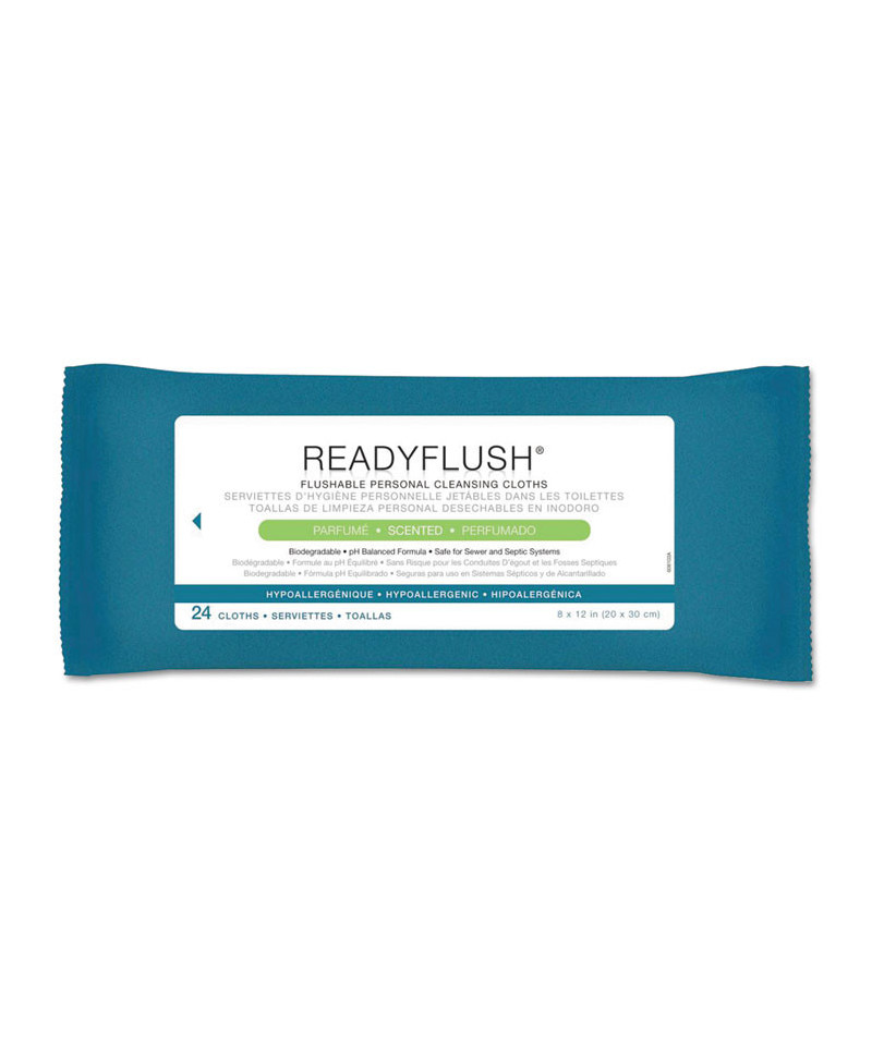 ReadyFlush Biodegradable Flushable Wipes, 1-Ply, 8 x 12, White, 24/Pack, 24 Packs/Carton