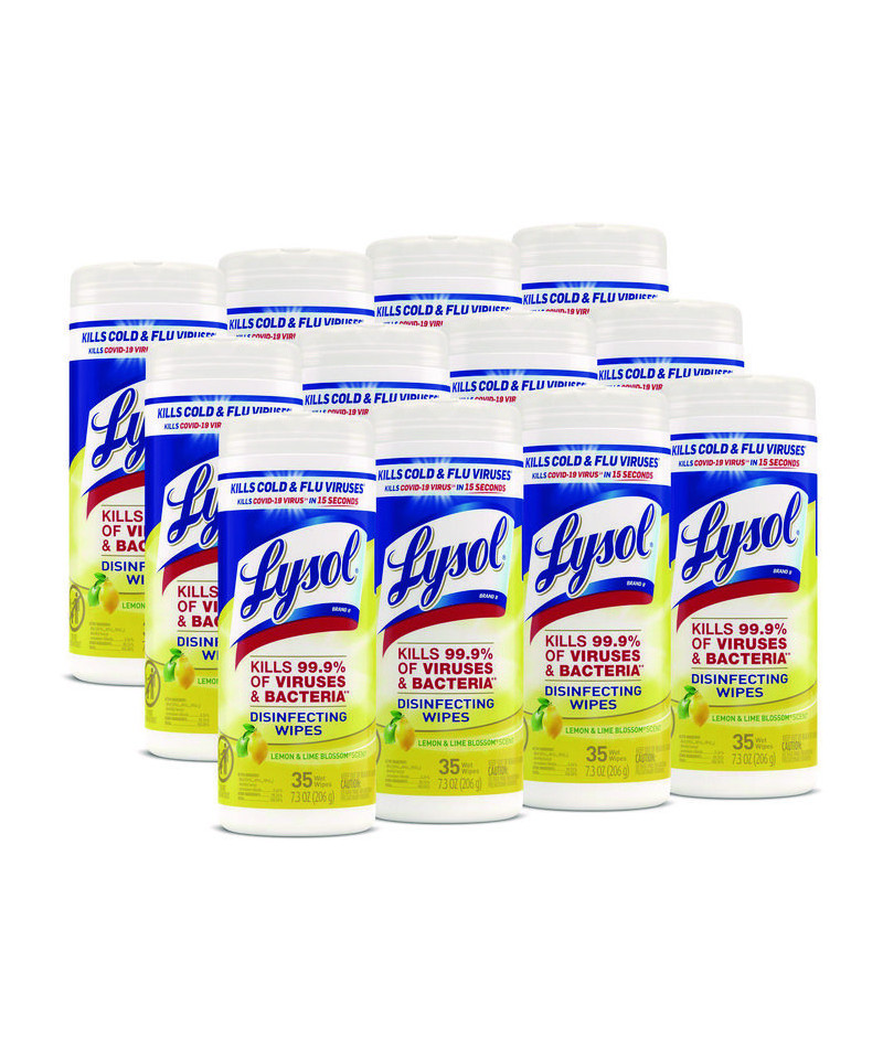 Disinfecting Wipes, 1-Ply, 7 x 7.25, Lemon and Lime Blossom, White, 35 Wipes/Canister, 12 Canisters/Carton