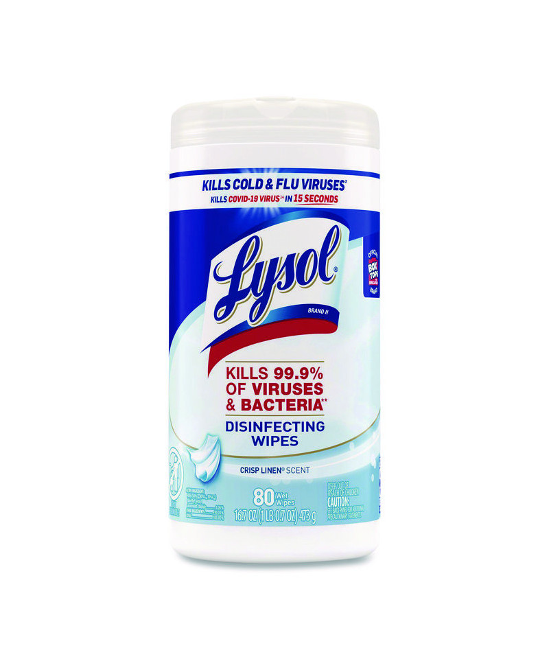 Disinfecting Wipes, 1-Ply, 7 x 7.25, Crisp Linen, White, 80 Wipes/Canister