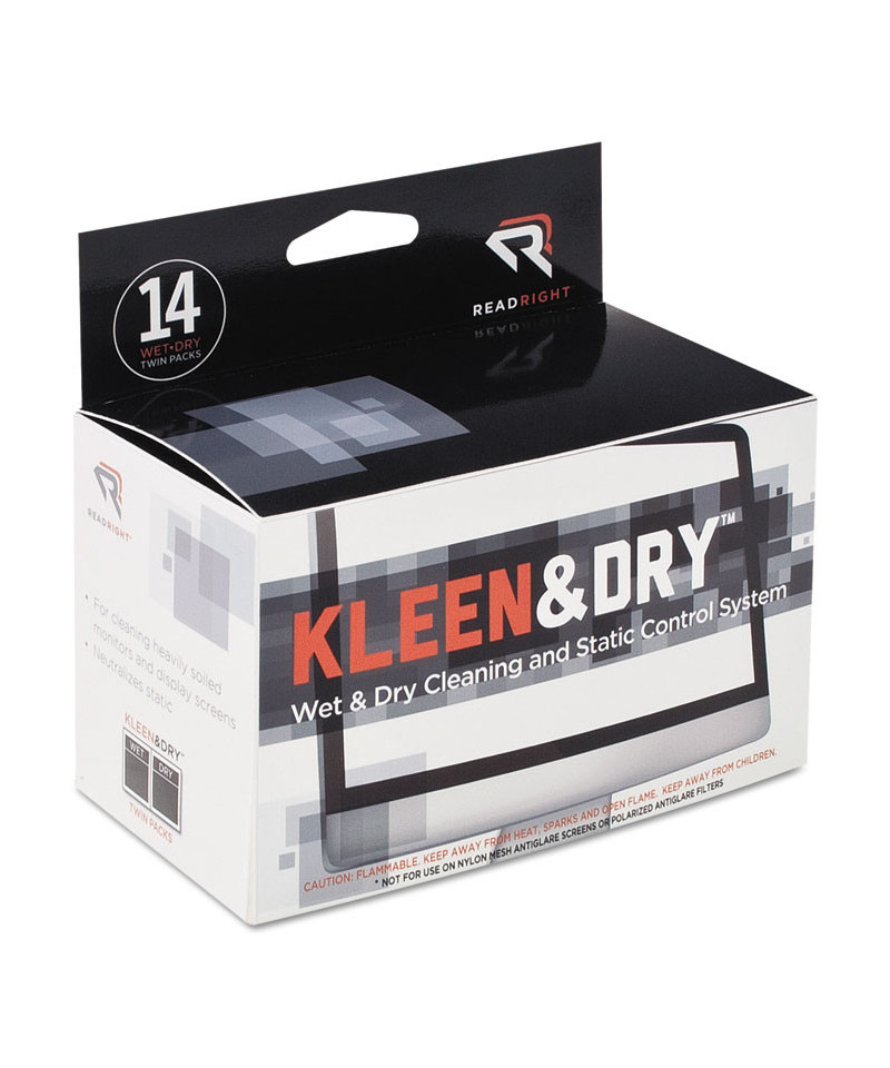 Effective and convenient method for cleaning! Heavily saturated wet wipe neutralizes static and removes dust, dirt and oil. Strong, dry, absorbent cloth dries and polishes screen to streak-free clarity. Ideal for large or heavily soiled computer and display screens, TVs and more. Not for use on nylon mesh/polarized antiglare screens. Perfect for work or home!