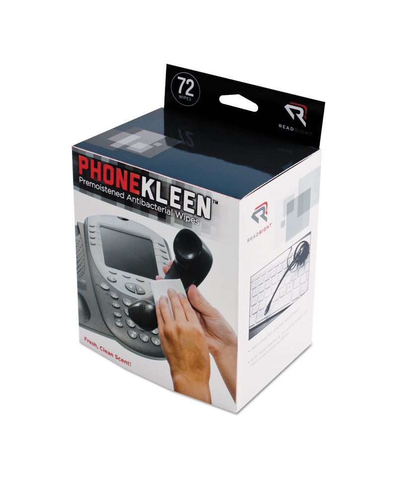 Convenient, disposable, pre-moistened wipes for cleaning smartphones, office phones, or other shared equipment. Use PhoneKleen wipes for an easy, one-step process to thoroughly clean firm, nonporous surfaces. These pre-moistened wipes are wrapped individually to preserve moisture and maximize effectiveness. Each box comes with multi-purpose wipes to use in the office, on car trips, on airplanes, in classrooms, or at home.