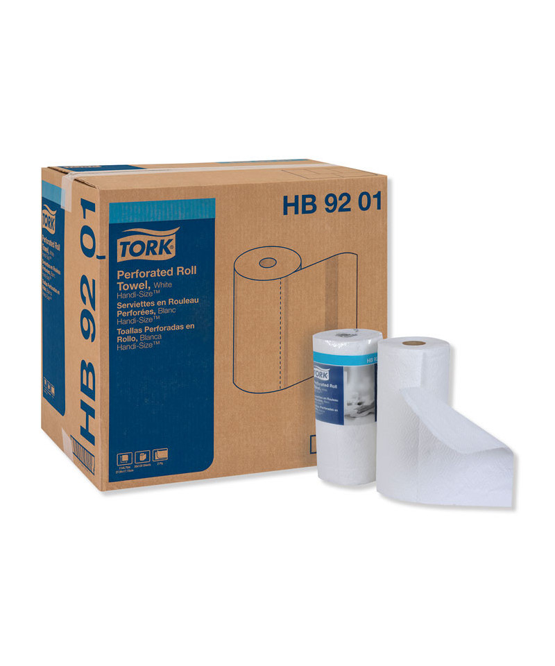 Tork® Handi-Size Perforated Roll Towels have high-bulk, 2-ply construction that maximizes absorbency for superior spill holding power using fewer towels. The Handi-Size sheet allows you to choose less paper and reduce waste. Super strong soft towels hold together even on tough jobs. Ideal for cleaning and wiping all surfaces.
