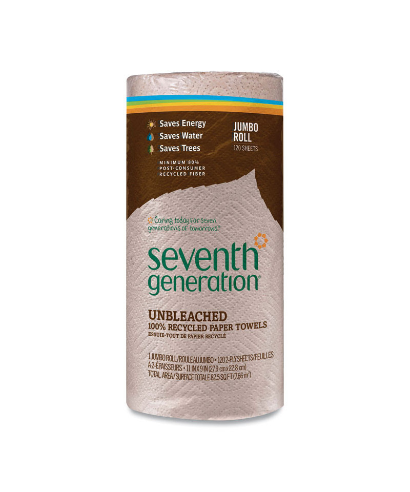 Because fewer natural resources are consumed during manufacturing, natural unbleached recycled paper towels are Seventh Generation's most sustainable yet. Processed without chlorine with no added dyes or fragrance. Full 11" x 9" sheet size. Two ply for absorbency and strength.