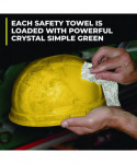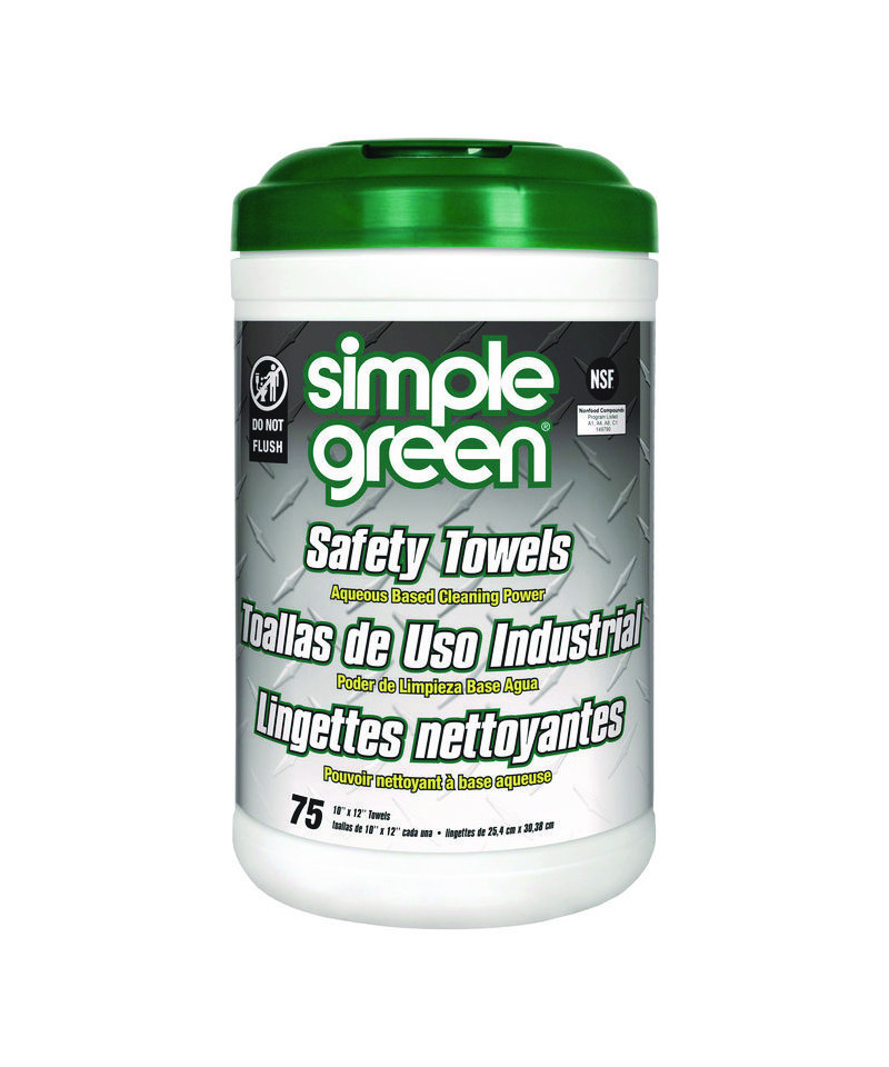 Simple Green Safety Towels are large-sized wipes for heavy-duty, multi-purpose cleaning. Each wipe is saturated with Crystal Simple Green, a powerful cleaner and degreaser. The durable, dual-sided wipes feature a scouring side for tough scrubbing and a smooth side for a non-abrasive shine. Easily remove dirt, grease, grime, oil, food spills, wet paint, carbon, graphite, tar, soot, and most inks. These wipes are safe for use on all washable surfaces including metals, concrete, rubber, finished wood, tile, laminates, concrete, stone, porcelain, carpet, and other industrial surfaces. Formula contains no added color or scent, and is NSF registered for use in food processing facilities and commercial kitchens.