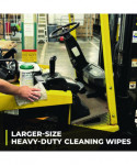 Simple Green Safety Towels are large-sized wipes for heavy-duty, multi-purpose cleaning. Each wipe is saturated with Crystal Simple Green, a powerful cleaner and degreaser. The durable, dual-sided wipes feature a scouring side for tough scrubbing and a smooth side for a non-abrasive shine. Easily remove dirt, grease, grime, oil, food spills, wet paint, carbon, graphite, tar, soot, and most inks. These wipes are safe for use on all washable surfaces including metals, concrete, rubber, finished wood, tile, laminates, concrete, stone, porcelain, carpet, and other industrial surfaces. Formula contains no added color or scent, and is NSF registered for use in food processing facilities and commercial kitchens.
