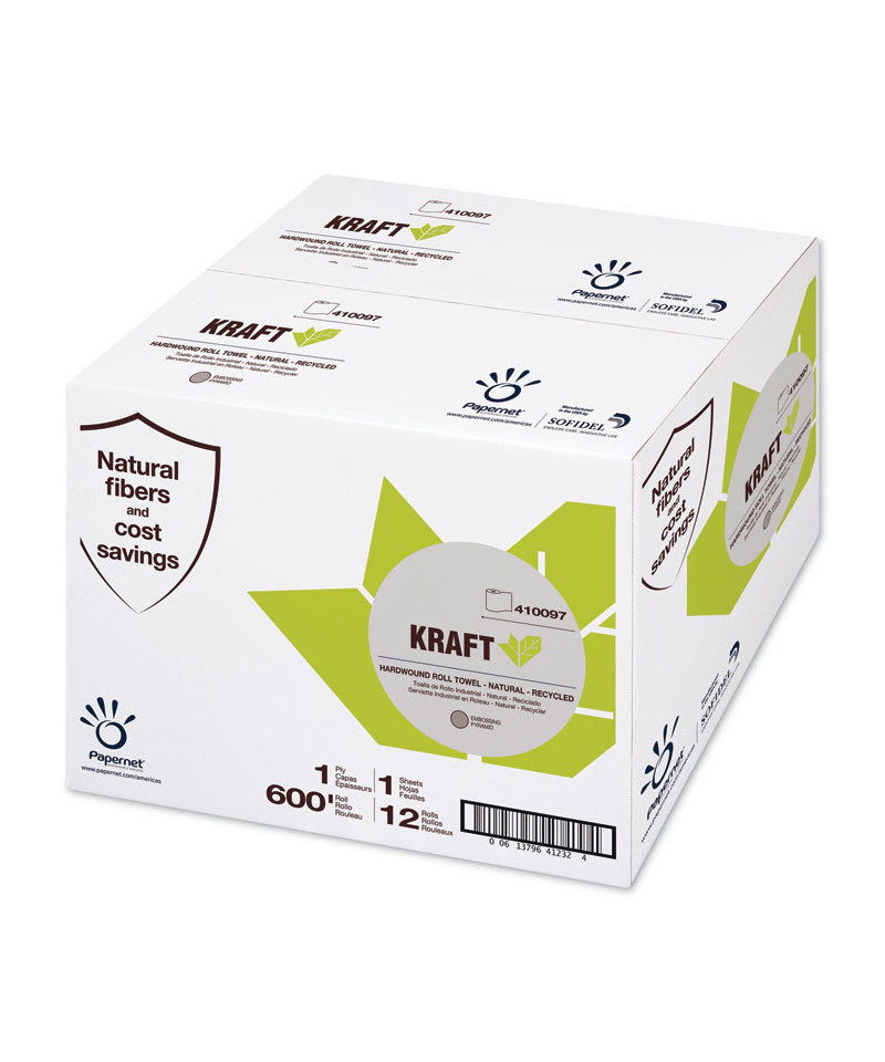 Papernet Kraft Hardwound Roll hand towels are ideal for placement at sinks in restrooms, classrooms, offices and more. Kraft towels offer resistance and absorption for effective hand drying at a low cost. Hardwound Roll Towels are a traditional option for schools, office buildings and more. The towels are easy to tear at the user's desired length and the rolls are easy for maintenance personnel to change.