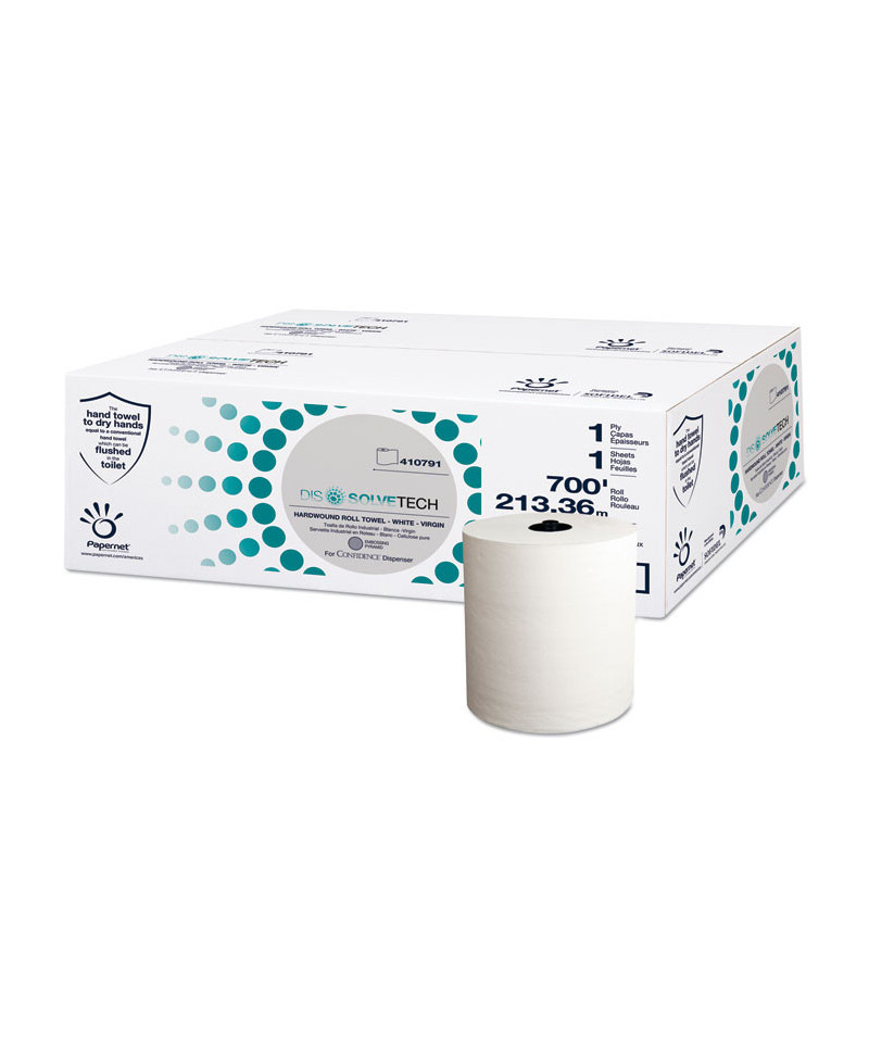 DissolveTech Paper Towel, 1-Ply, 7.5" x 700 ft, White, 6 Rolls/Carton