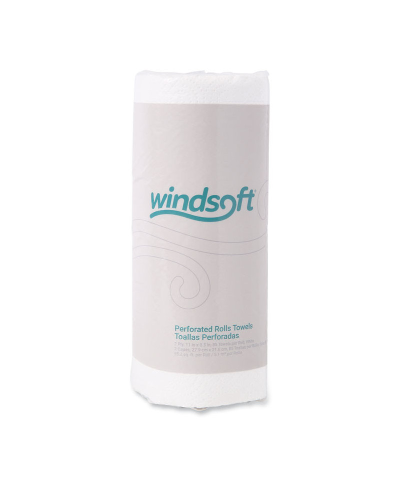 Durable, two-ply, white, unscented paper kitchen roll towels. Engineered with premium embossing and enhanced absorbency paper towels to get the most out of each roll. Great for general purpose cleaning and wiping in kitchens, bathrooms, office spaces, and industrial settings. Perforated sheets for easy tearing to suit the size of the spill. Individually wrapped for maximum cleanliness and convenient storage.