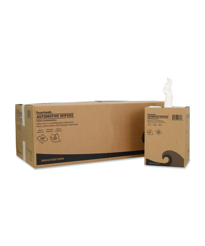 A powerful, durable, and convenient solution for your automotive cleaning and maintenance tasks. The Boardwalk automotive wiper Pop-Up Box is designed to combine high absorbency, strength, and ease of use — making it the perfect shop towel for any job that demands tough, reliable cleaning. The easy-to-use pop-up dispenser box allows for quick, single-sheet dispensing — no need to fumble with rolls or loose sheets.