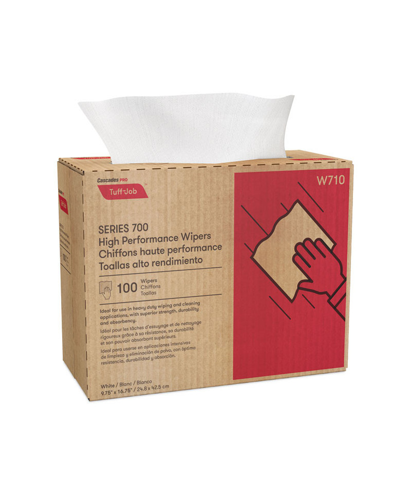 Engineered for maximum durability and strength, Cascades PRO Tuff-Job Spunlace high performance wipers can handle all wet or dry wiping applications within any industrial task. Inherently low linting to minimize contamination on surfaces and engineered for high resistance to breakdown in harsh solvents and strong chemical solutions. The ideal replacement for rental shop towels and rags with extended reuse properties.