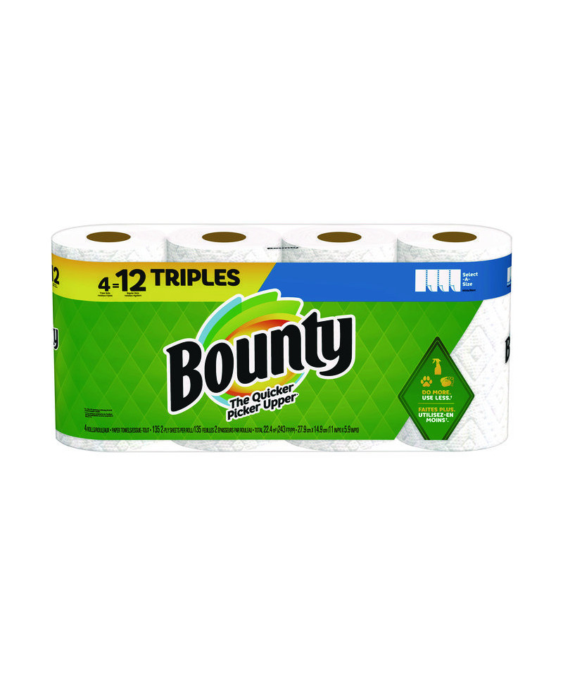 Spilled your drink? Quick! The Quicker Picker Upper. Be ready to tackle messes with Bounty Paper Towels! Each sheet is 2x more absorbent and picks up spills and messes quicker vs. the leading ordinary brand so you can use less. Bounty Select-A-Size towels are versatile, so you can choose your sheet size depending on your mess. Bounty products are proudly made with a commitment to creating solutions for a sustainable future. That's why for every tree used, at least two are regrown so you can conveniently and confidently clean messes in the kitchen and around the house. Bounty always has your back in and out of the kitchen so whether it's juice on the counter or ice cream on the table, we make sure spills won't stand a chance.