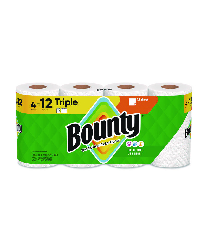 Don't let spills and messes get in your way. Lock in confidence with Bounty, the Quicker Picker Upper. This pack contains Bounty white full sheet paper towels that are 2X more absorbent and strong when wet, so you can get the job done quickly. Bounty paper towels also can last longer, so you can change the roll less often!