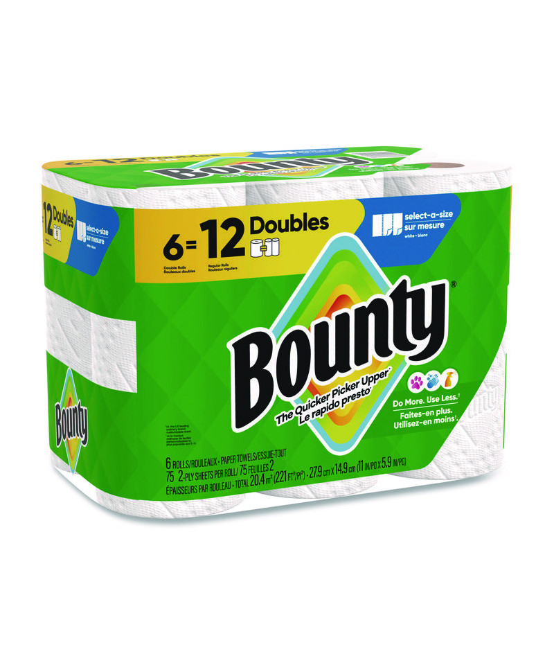 Spilled your drink? Quick! The Quicker Picker Upper. Be ready to tackle messes with Bounty Paper Towels! Each sheet is 2x more absorbent and picks up spills and messes quicker vs. the leading ordinary brand so you can use less. Bounty Select-A-Size towels are versatile, so you can choose your sheet size depending on your mess. Bounty products are proudly made with a commitment to creating solutions for a sustainable future. That's why for every tree used, at least two are regrown so you can conveniently and confidently clean messes in the kitchen and around the house. Bounty always has your back in and out of the kitchen so whether it's juice on the counter or ice cream on the table, we make sure spills won't stand a chance.