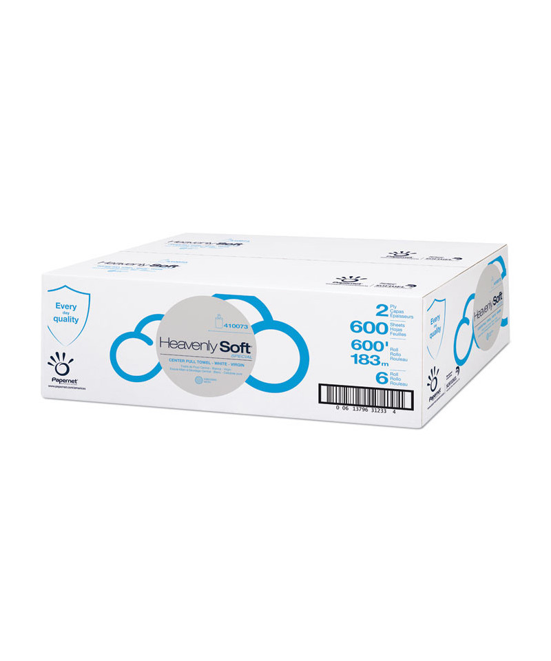 A unique construction allows plies of paper to be bonded and embossed together with glue for a softer "at-home" look and feel. The technology used to make these products limits separation of plies and tissue tears for a more pleasant experience. Heavenly Soft Special Center Pull hand towels are ideal for businesses that want to offer comfort with high-quality paper products in their restrooms, such as hotels, office buildings or restaurants. These durable, economical towels offer one-at-a-time dispensing that is ideal for high-traffic facilities and helps reduce paper waste.
