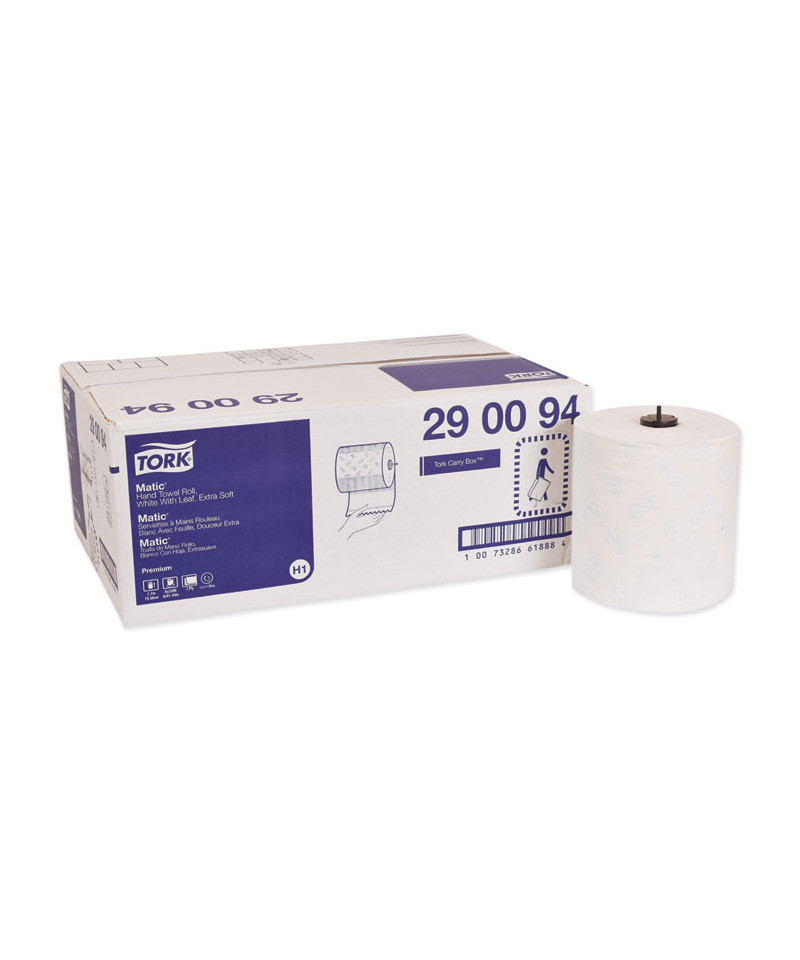 Tork® Premium Matic® Hand Towel Roll is a quick-absorbing, thicker 2-ply paper roll towel with improved softness and strength that feels more like cloth. Designed specifically for the Tork Elevation® Matic® Hand Towel Roll Dispensers, this high-end Tork Premium Extra Soft Hand Towel offers a truly best-in-class product for no-touch, hygienic dispensing systems. Ideal for Class-A office buildings and upscale dining facilities. This towel saves time and controls consumption by one-at-a-time sheet dispensing. With high-performance towels customers use fewer, resulting in greater cost savings. Long-lasting rolls minimize maintenance costs while maximizing restroom service. Available in an Easy Handling® Carry Box.