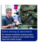 Using different cloths for each task is inefficient. These multipurpose disposable cloths work with cleaning solutions and chemical solvents to handle industrial tasks such as oil and grease removal. Reduces the risk of burns and cuts with a heavy-duty design. The sustainable design reduces solvent use by 40%. One-at-a-time dispensing means less waste, and the packaging is made from recycled materials.