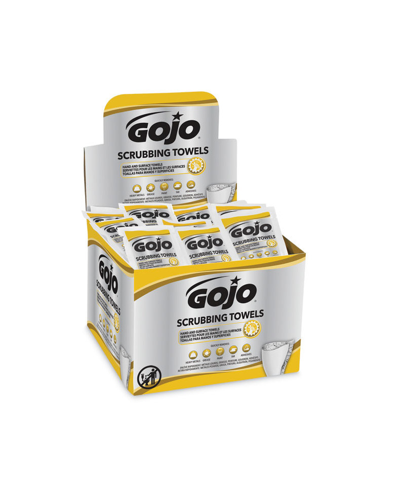 GOJO heavy-duty hand cleaning wipes formulated to lift heavy dirt and grime without water. Contains soothing skin conditioner to help prevent skin dryness and irritation. Dual textured towel has a scrubbing side to loosen soil, tar, grease and adhesives, and a smooth side for quick absorption. Portable, convenient and easy to use. GOJO is a member of the Responsible Flushing Alliance and recommends that users do not flush wipes.