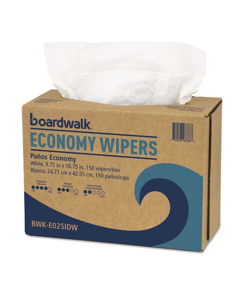 Boardwalk® economy series wipers are ideal for glass and mirror cleaning. They are nylon reinforced for added wet strength to help prevent material breakdown. These versatile wipers also have superior dry wiping capabilities. Low-linting paper wiper can be used for everyday tasks such as general cleaning, wiping up spills and as a hand wipe.