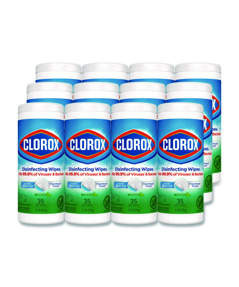 Clorox® Disinfecting Wipes clean, disinfect and remove allergens leaving behind a pleasant scent. Disinfecting Wipes clean and disinfect with antibacterial power that kills 99.9% of viruses and bacteria that can live on surfaces, including COVID-19 Virus, staph, E. coli, MRSA, salmonella, strep and Kleb on hard, nonporous surfaces when used as directed. These all-purpose disposable wipes remove common allergens, germs and messes on surfaces like kitchen counters, bathroom surfaces and more. Disinfecting Wipes are safe to use on a variety of surfaces including non-food-contact surfaces in the home, office, daycares, schools, hotels, restaurants and more. Use as directed. Allow product to air dry.