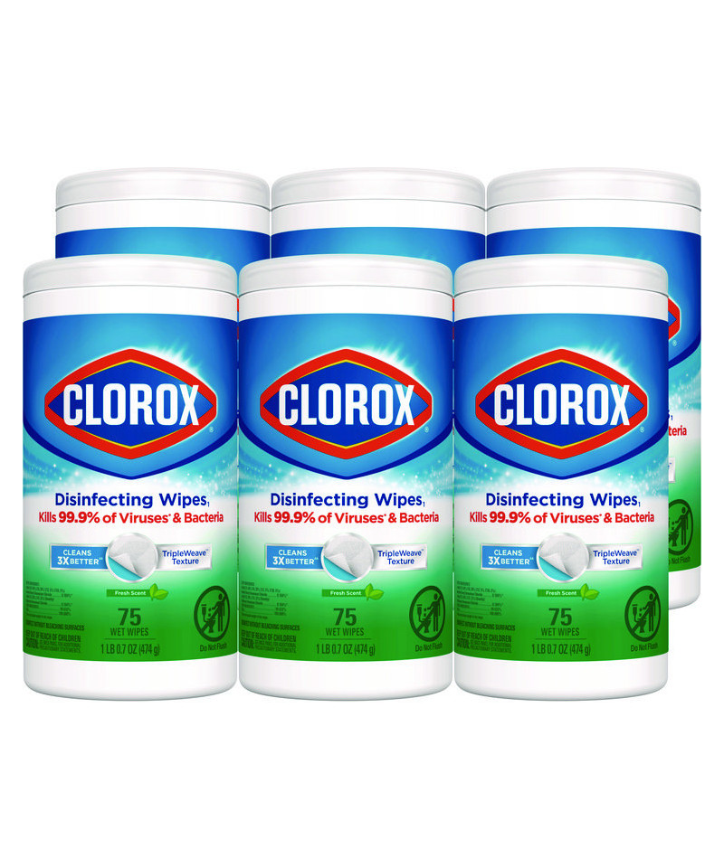Clorox® Disinfecting Wipes clean, disinfect and remove allergens leaving behind a pleasant scent. Disinfecting Wipes clean and disinfect with antibacterial power that kills 99.9% of viruses and bacteria that can live on surfaces, including COVID-19 Virus, staph, E. coli, MRSA, salmonella, strep and Kleb on hard, nonporous surfaces when used as directed. These all-purpose disposable wipes remove common allergens, germs and messes on surfaces like kitchen counters, bathroom surfaces and more. Disinfecting Wipes are safe to use on a variety of surfaces including non-food-contact surfaces in the home, office, daycares, schools, hotels, restaurants and more. Use as directed. Allow product to air dry.