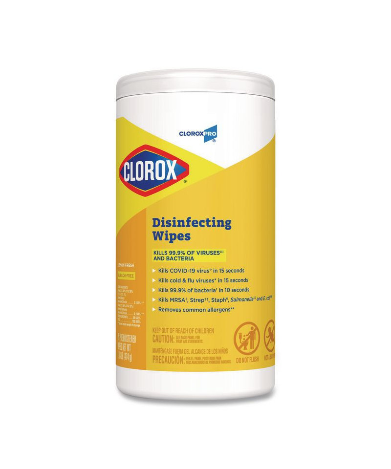 Clorox® Disinfecting Wipes clean, disinfect and remove allergens leaving behind a pleasant scent. Disinfecting Wipes clean and disinfect with antibacterial power that kills 99.9% of viruses and bacteria that can live on surfaces, including COVID-19 Virus, staph, E. coli, MRSA, salmonella, strep and Kleb on hard, nonporous surfaces when used as directed. These all-purpose disposable wipes remove common allergens, germs and messes on surfaces like kitchen counters, bathroom surfaces and more. Disinfecting Wipes are safe to use on a variety of surfaces including non-food-contact surfaces in the home, office, daycares, schools, hotels, restaurants and more. Use as directed. Allow product to air dry.