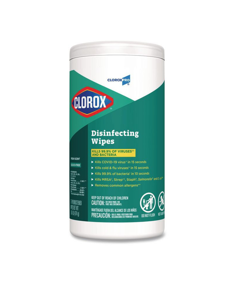 Clorox® Disinfecting Wipes clean, disinfect and remove allergens leaving behind a pleasant scent. Disinfecting Wipes clean and disinfect with antibacterial power that kills 99.9% of viruses and bacteria that can live on surfaces, including COVID-19 Virus, staph, E. coli, MRSA, salmonella, strep and Kleb on hard, nonporous surfaces when used as directed. These all-purpose disposable wipes remove common allergens, germs and messes on surfaces like kitchen counters, bathroom surfaces and more. Disinfecting Wipes are safe to use on a variety of surfaces including non-food-contact surfaces in the home, office, daycares, schools, hotels, restaurants and more. Use as directed. Allow product to air dry.