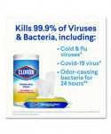 Clorox® Disinfecting Wipes clean, disinfect and remove allergens leaving behind a pleasant scent. Disinfecting Wipes clean and disinfect with antibacterial power that kills 99.9% of viruses and bacteria that can live on surfaces, including COVID-19 Virus, staph, E. coli, MRSA, salmonella, strep and Kleb on hard, nonporous surfaces when used as directed. These all-purpose disposable wipes remove common allergens, germs and messes on surfaces like kitchen counters, bathroom surfaces and more. Disinfecting Wipes are safe to use on a variety of surfaces including non-food-contact surfaces in the home, office, daycares, schools, hotels, restaurants and more. Use as directed. Allow product to air dry.