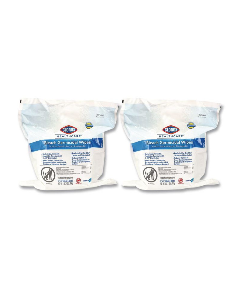Your proven bleach solution for cleaning. Clorox Healthcare® Bleach Germicidal Wipes kill C. difficile and C. auris in three minutes and 58 other microorganisms in one minute or less, including outbreak causing viruses, emerging viral pathogens, MRSA and VRE when used as directed. With superior surface compatibility on a wide range of hospital surfaces, these disinfecting wipes help you cover more square footage per wipe with fast contact times and greater wetness surface coverage than the leading competitor. The phosphate free formula is optimized to be easy on surfaces and leaves less residue behind. Use in healthcare settings including hospitals, medical facilities, outpatient facilities and long term care facilities. Follow special instructions for cleaning prior to disinfection.