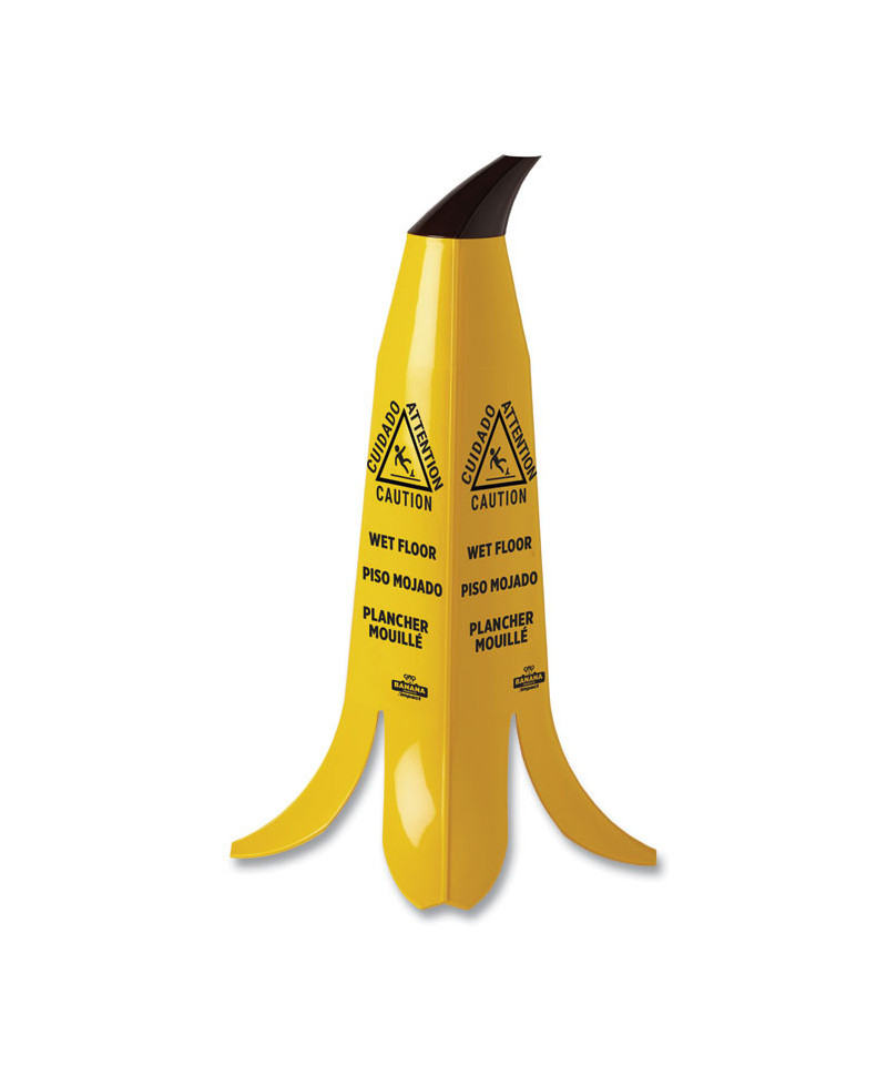 The Banana Cone is extremely effective at gaining attention and delivering the intended warning. In a perception study, data showed that people noticed the Banana 22x more than the traditional A-Frame wet floor signs. Trilingual in English, Spanish and French Canadian. Stackable with or without the attached stem.