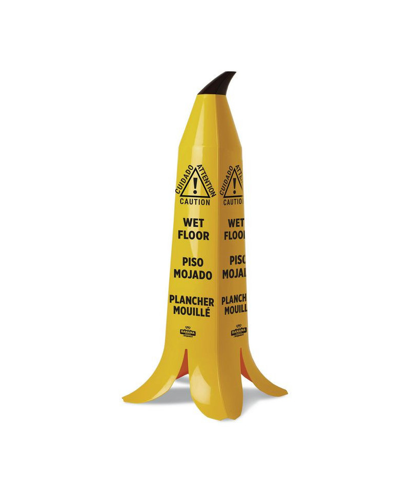 The Banana Cone is extremely effective at gaining attention and delivering the intended warning. In a perception study, data showed that people noticed the Banana 22x more than the traditional A-Frame wet floor signs. Trilingual in English, Spanish and French Canadian. Stackable with or without the attached stem.