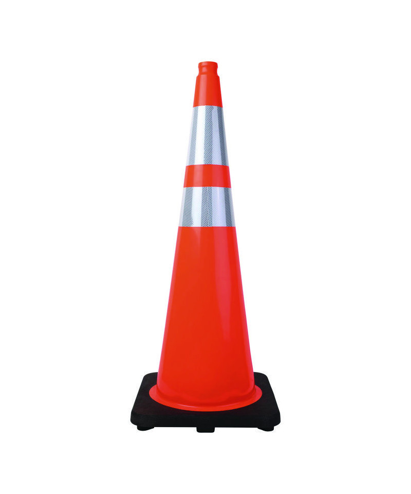 Sturdy, molded cones have reflective strip for maximum visibility. Stack easily for storage. Pavement-gripping bottom.