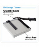 Designed to hold up to rigorous activity, day in and day out. The machine-ground, lever-style blade is sharp and accurate enough that it can remove even the tiniest sliver of paper from your work. For safety, a spring-action handle prevents the blade from falling down unexpectedly. Lightweight and marked with guides, Vantage® trimmers offer safety and convenience, while giving you the accuracy you require. To ensure an even cut, each trimmer features an automatic clamp that provides firm, even pressure, preventing paper from shifting. To protect the blade and keep fingers safe, the handle can be locked in the down position. For durability, the sturdy metal base provides a solid foundation. For measuring, the base contains carefully screened guides and an adjustable backstop -- which is the easiest way to ensure accuracy during repetitive cuts. And for portability, it's designed to be light enough to take anywhere.