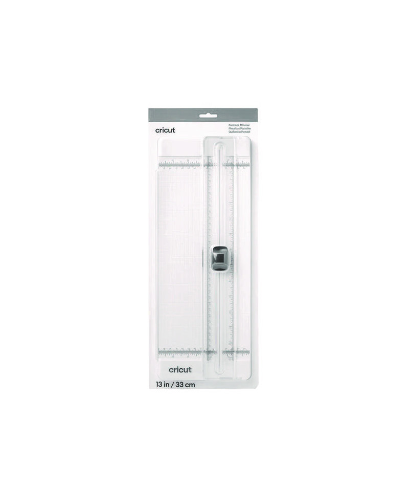 It's a cinch to cut straight lines when you use the 13 Cricut® portable trimmer. A unique easy-glide blade system yields precise, straight cuts, while an ergonomic, custom-fit handle provides a smooth grip over hundreds of cuts. The dual-hinged rail makes it simple to quickly load materials, measure, and cut from either side. Continuous measuring marks, rulers in inches and centimeters, and 0.25 grid marks, along with a 16 swing-out arm, help you measure for accurate results. Keep replacement blades in the convenient storage compartments on the underside of the trimmer.